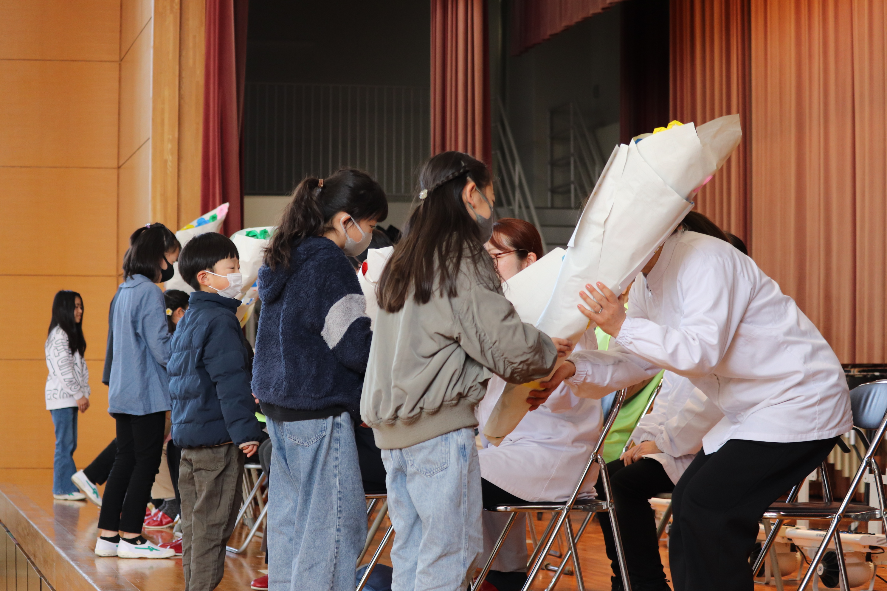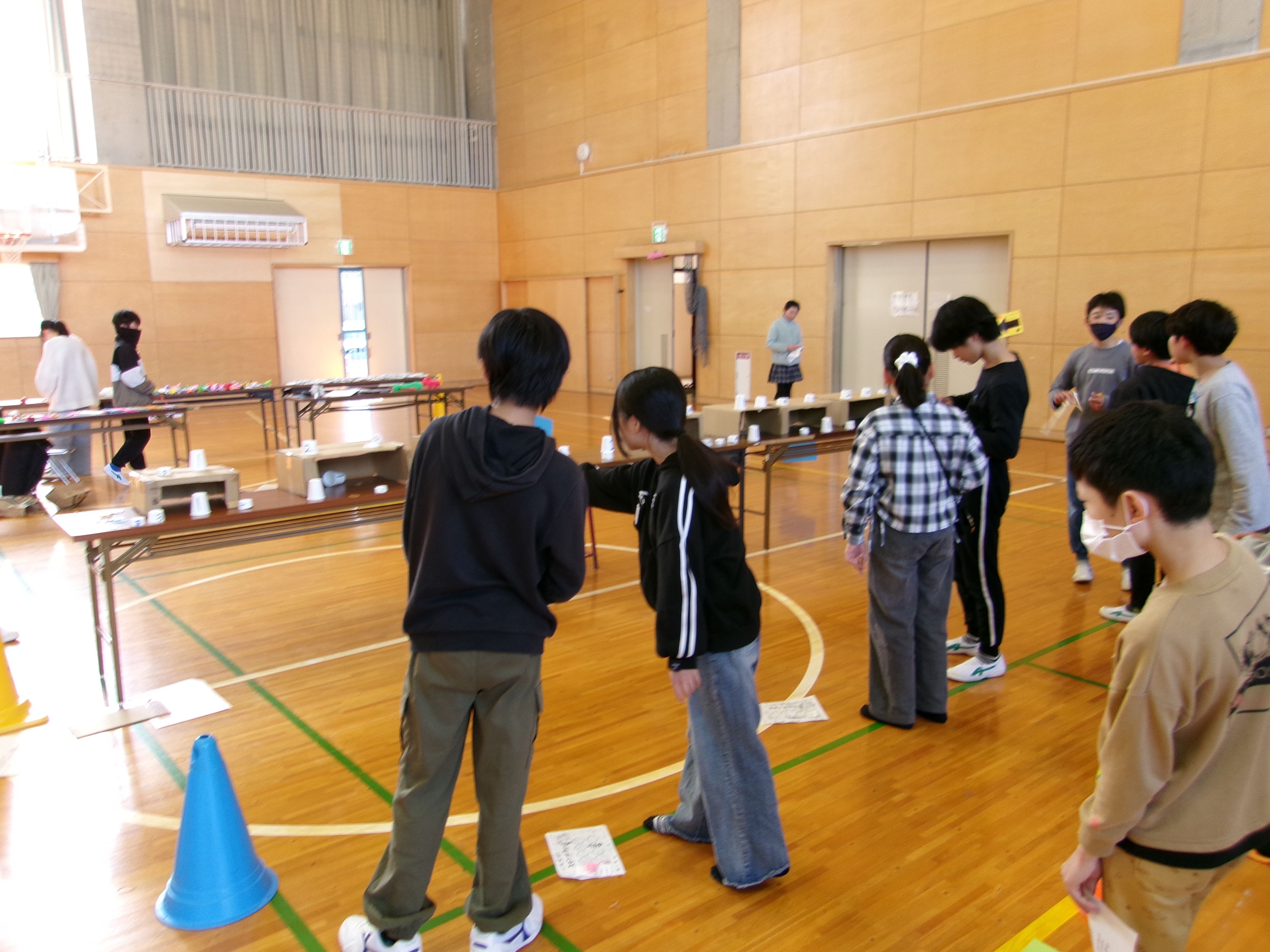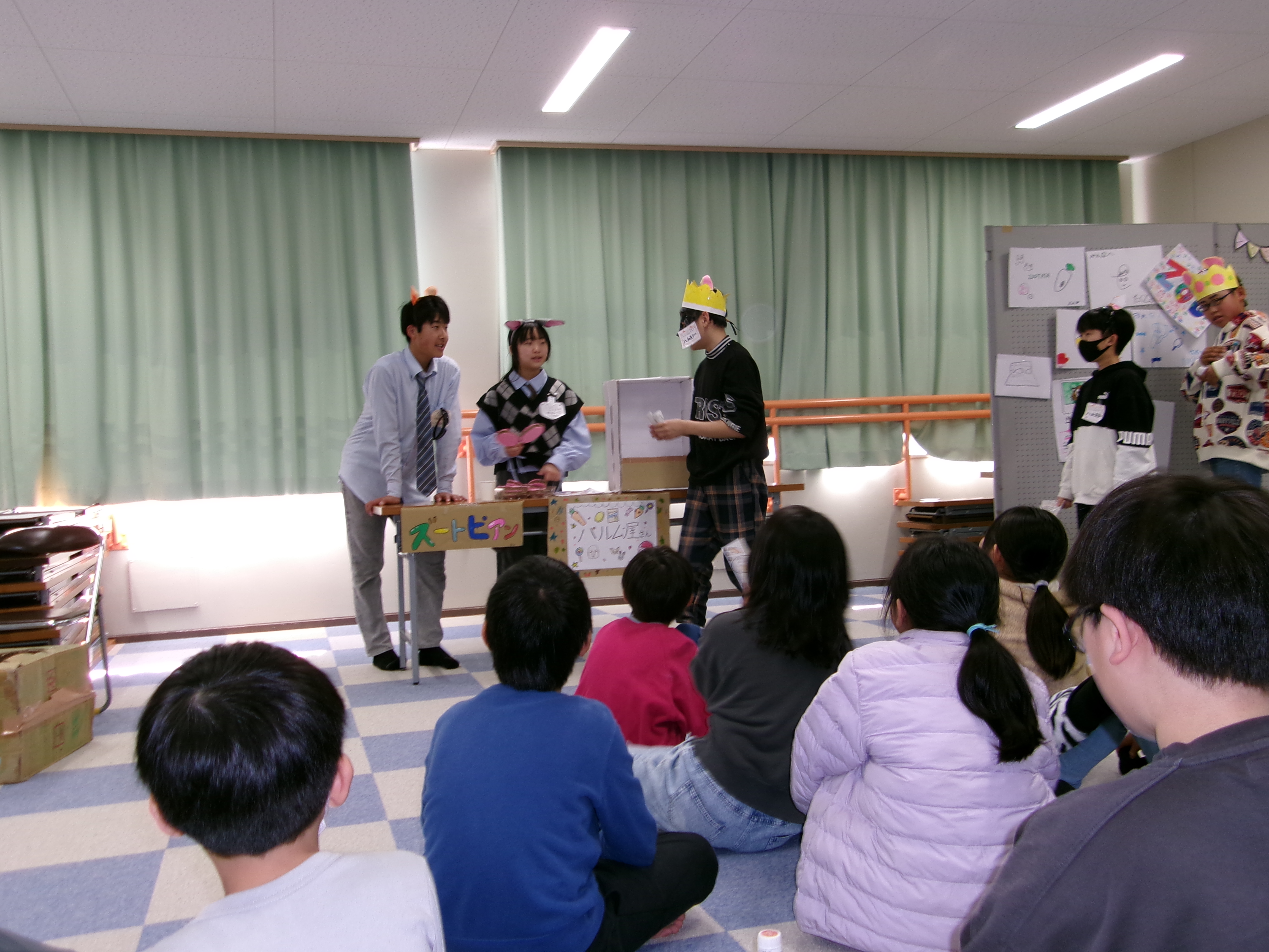 卒業を前に、6年生が、1年生から5年生の児童に「ありがとう」の気持ちを伝えたいと、全校で楽しめるイベントを企画しました。射的ゲームやお化け屋敷、劇など、グループごとに工夫を凝らして準備を進め、当日も6年生が主体となって会を運営しました。