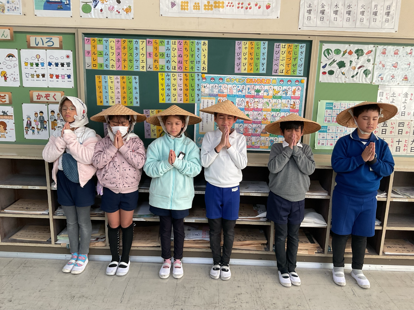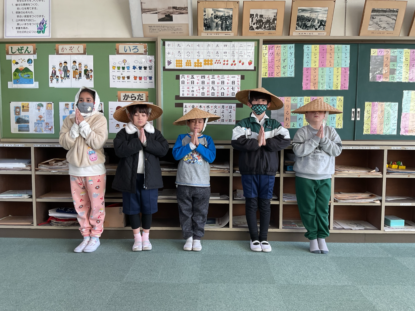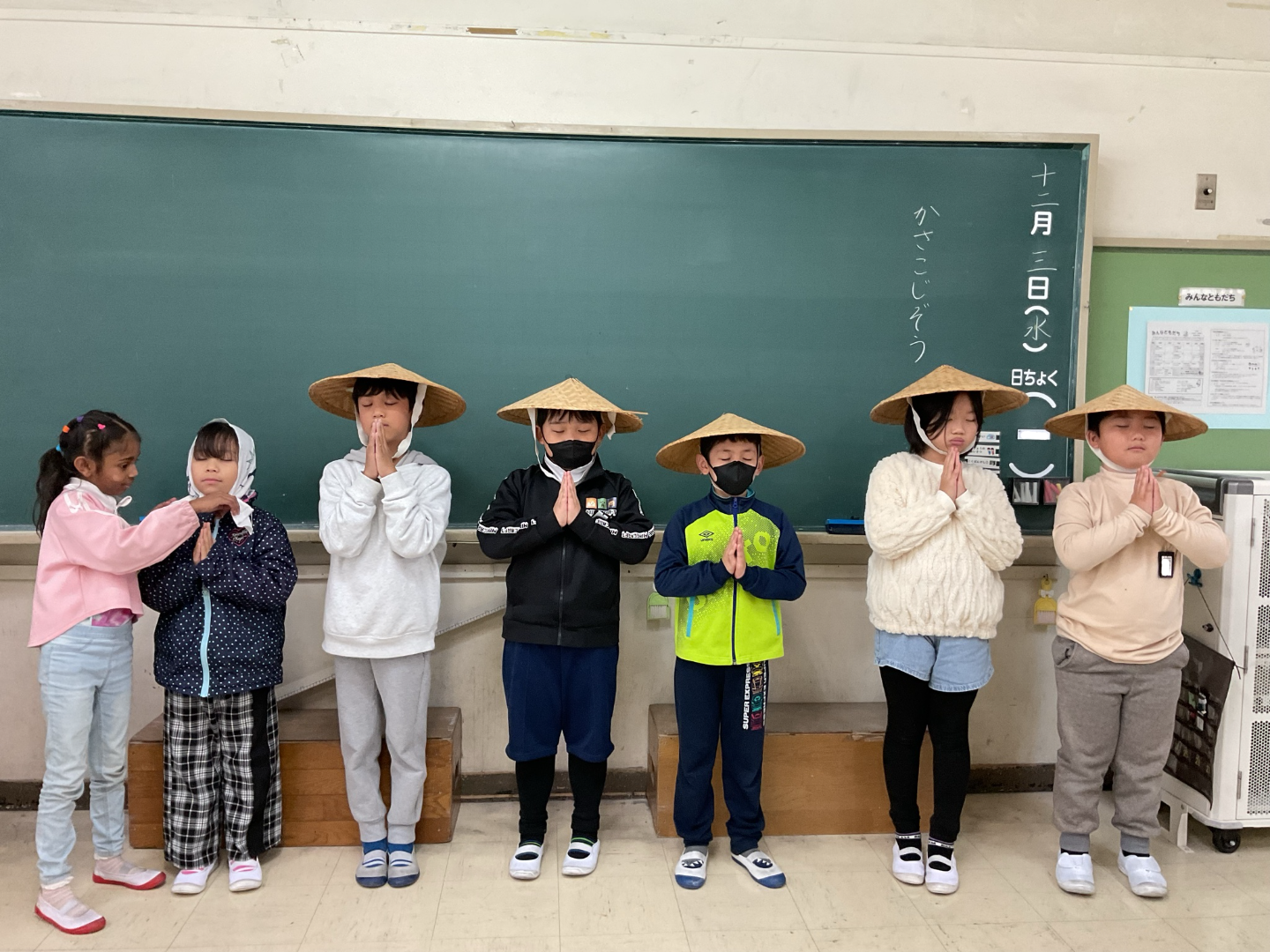 2年生は、国語「かさこじぞう」で、昔話にふれ、そのおもしろさについてを学習しています。じいさまや、じぞうさまになりきって、演じることができました。