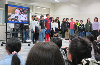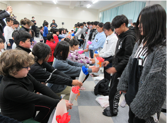 3月5日 6年生を送る会 体育館が工事中のため、多目的室で学年ごとに6年生へありがとうの気持ちをそれぞれの形で伝えました。たくさんのプレゼントを受け取った6年生は「嬉しい」「感動した」と喜んでいました。