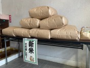 学校にある田んぼと、みな丸会で田植えを行った田んぼで、できた新米を学校へ届けていただきました。収穫できた新米は、収穫祭や調理実習などでおいしくいただこうと考えています。