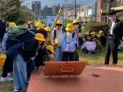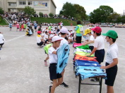 授業参観に引き続き、引き渡し訓練を運動場にて行いました。