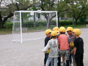 寄付でいただいたフットサルゴールが届きました。放課では1・2年生の子たちが使います。早速、ゴールを使って楽しく遊ぶ姿が見られました。