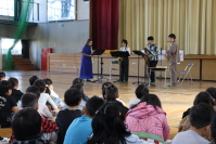 1〜4年生は、芸術鑑賞会として「サクソフォン四重奏」を聞きました。知っている曲も多く演奏され、リズムをとったり、歌ったりしながら楽しい時間を過ごしました。