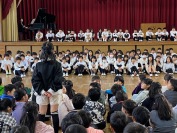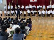 4年生は、11月5日の小学校音楽会で歌う「地球の子どもたち」を全校児童に向けて披露しました。体育館で歌声を聞いた3年生からは「きれいな歌声でした」「来年はがんばりたい」という声が聞かれました。