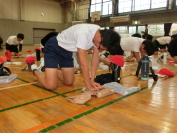 6年生は、愛知県医師会と日本救急蘇生普及協会の方から救急蘇生法について講習を受けました。個人に人形を用意してもらえたので、全員が蘇生の方法を体験することができました。