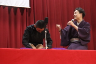 5・6年生はこどもアートふれあい事業としての芸術鑑賞会に参加しました。今回は、日本の話芸「落語や演芸」を楽しむということもあり、会場の体育館では、子どもたちの大きな笑い声がずっと響いていました。