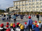 教室にいるときに地震が発生した設定での避難訓練を全校で行いました。どの子も「お・は・し・も」を意識して行うことができました。