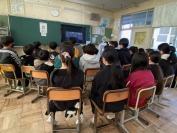 1年生は、市の交通指導員さんや安心安全課の方による交通安全教室に参加しました。交通安全についての話を聞いたり、横断歩道の渡り方を再確認したりすることができました。