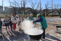 みな丸会主催の収穫祭が行われました。知立市防災ボランティア連絡会の方やとーちゃん会の皆さんの協力のもと、ご飯の災害時ビニール炊き出し、落ち葉での焼き芋、豚汁づくりなど参加者の皆さんと一緒に行い、それぞれおいしくいただきました。