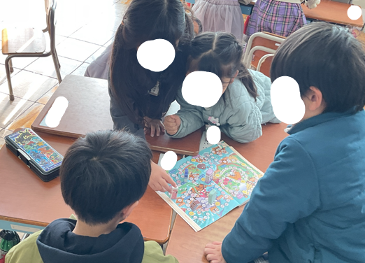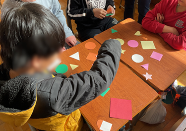 1月29日(木)5・6・7組 英語活動(色・形のかたちとり)