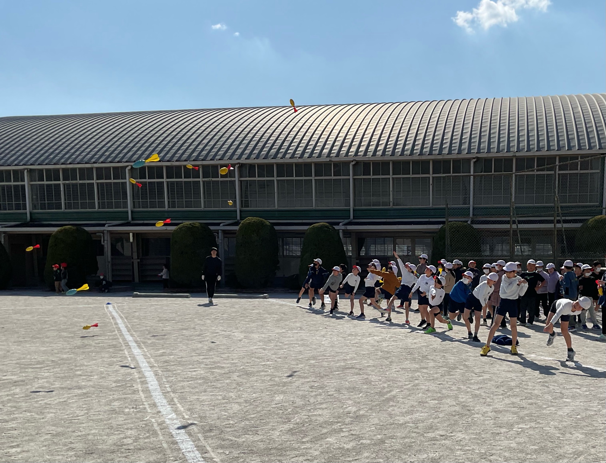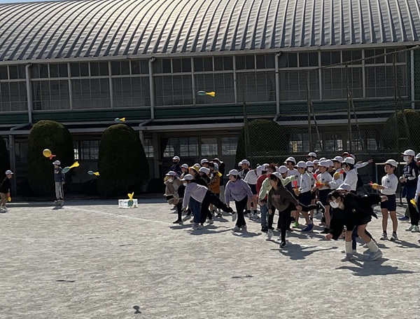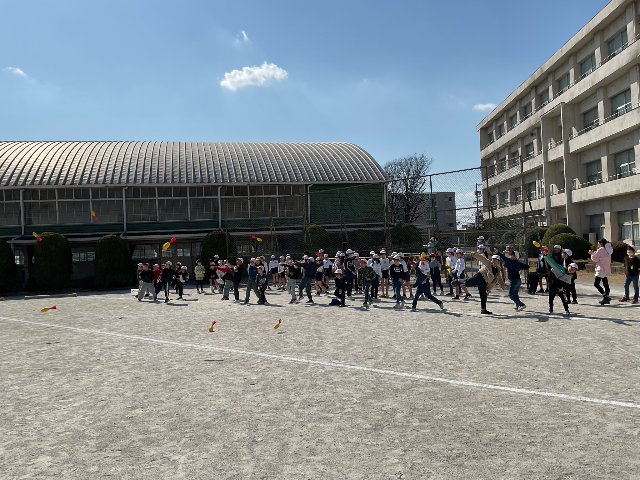 2月18日(水) 3,4年生 投運動の練習(ジャベリックスロー投げ)