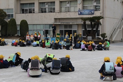 3月13日 (金) 知立駅南振興会様より、1・2年生児童全員に防犯ブザーの寄付をいただきました。