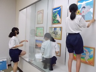 7月23日から30日にかけて、知立市図書館にて美術部展が開催されました。美術部の生徒達が、これまでの部活動の集大成として作った作品を展示しました。多くの方が来展してくださり、生徒たちと作品について語る姿をみることができました。