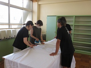 中学校に入って初めての宿泊体験です。砂浜でグループごとに個性的なサンドアートを仕上げる「砂の造形」や各クラスで行われるレクリエーション、宿泊での共同作業などを通して、友だち同士の絆をより一層深めることができました。
