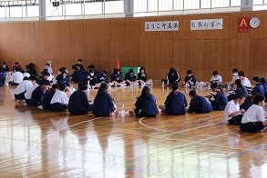 4年ぶりに全校生徒が体育館に入り、3年生を送る会が行われました。「昇り竜応援団」による力のこもった応援、生徒会役員の生徒が作成し、準備をした思い出のスライド、在校生からの感謝のメッセージなどを通して3年生は3年間を振り返っていました。最後は、在校生からの迫力のある合唱に応えるように3年生の美しい合唱が体育館に響きました。
