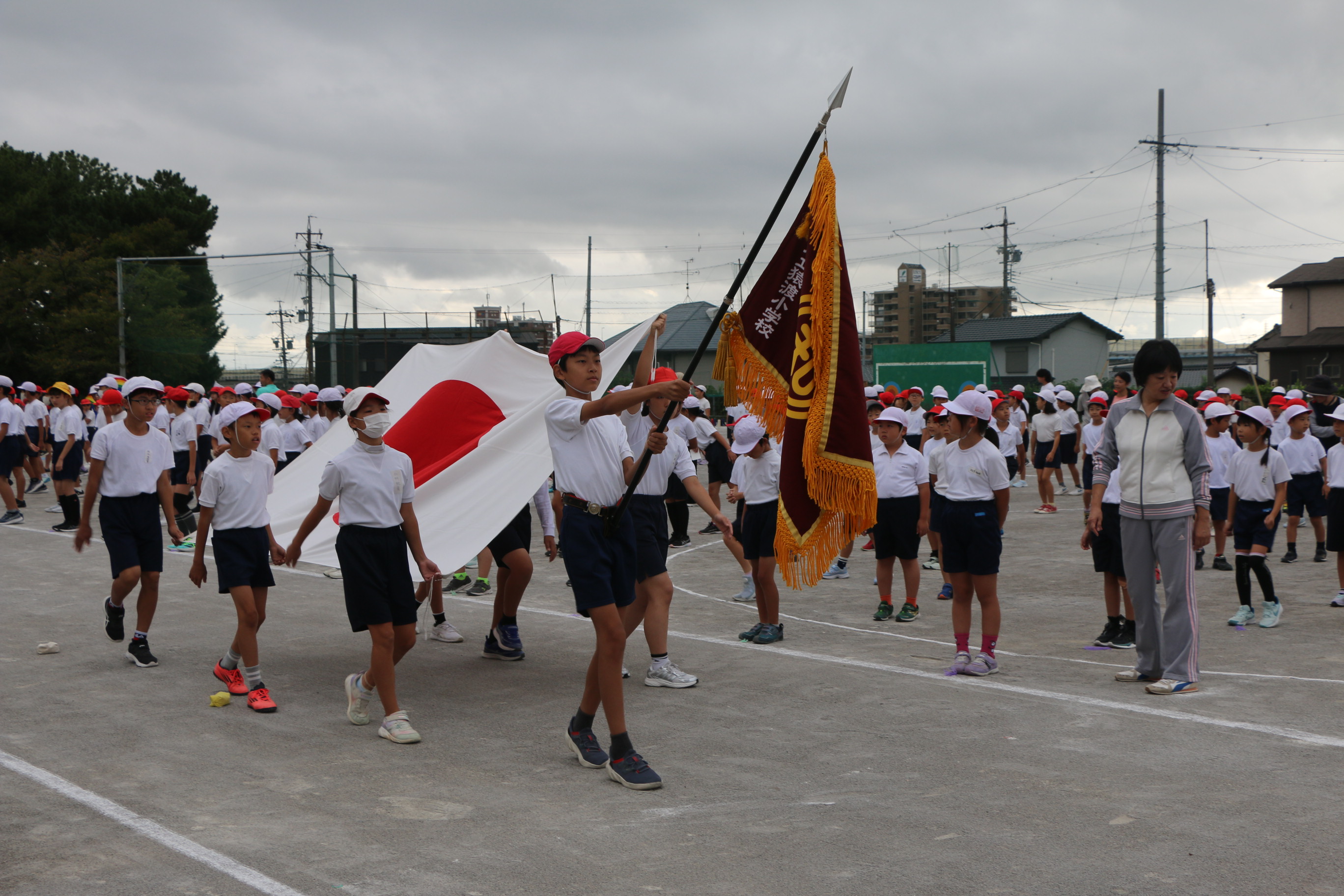 10月14日(火)後期認証式 全校運動会練習 後期の学級委員・委員長の認証式と全校運動会練習が行われました。運動会練習では、開会式や猿渡っ子体操の練習を行いました。