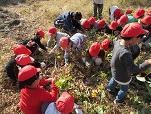 1年生が先日収穫したさつまいもを使って、おにまんじゅうをつくりました。